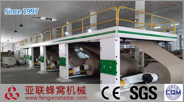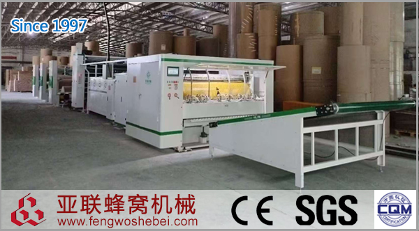 ![]() A performance feature (1) The production line is capable of fully automatic production of honeycomb paper cores in one stop. The production process starts from high-strength corrugated paper to directly out the cut honeycomb paper core, and introduces foreign advanced technology to eliminate the paper cutter and docking machine required for traditional production of honeycomb paperboard. The biggest advantage of this line is high automation and low labor costs.(2) Horizontal cutting, advanced structure and fast cutting speed. (3) Applying rubber with a toothed roller, the honeycomb aperture is evenly ruled (has applied for national invention patent) (4) The production line has high degree of automation, advanced technology, low loss, and the yield of honeycomb paperboard reaches 98%. (5) Full computer PC control, using advanced electrical design, collecting machine, electricity, gas, light, liquid in one, the calculator can touch screen operation. The workers are simple and convenient to operate, stable and reliable in performance, and are at the leading level in the domestic counterparts. (6) From the raw paper into the cardboard, it is completed once on the fully automatic production line. The operator only needs 2 to 3 people, and the raw paper has high utilization rate and advanced technology. ![]() The process flow is as follows: Multi-roll paper at the same time on paper → glue line → composite drying forming → cross cutting → automatic collection and dockingThree main technical parameters: Model: ZDFX-1600 Base paper maximum width: 1600mm Maximum width of core material: 1600mm Core width (after stretching) 1300mm Core paper cross cutting speed: 550 times / minute Gluing method: gear transfer coating / glue spraying system Number of paper rolls: 6 rolls Honeycomb core thickness: 6-100mm Honeycomb side length: 4-40mm (customers choose two or four) Power: 50KW